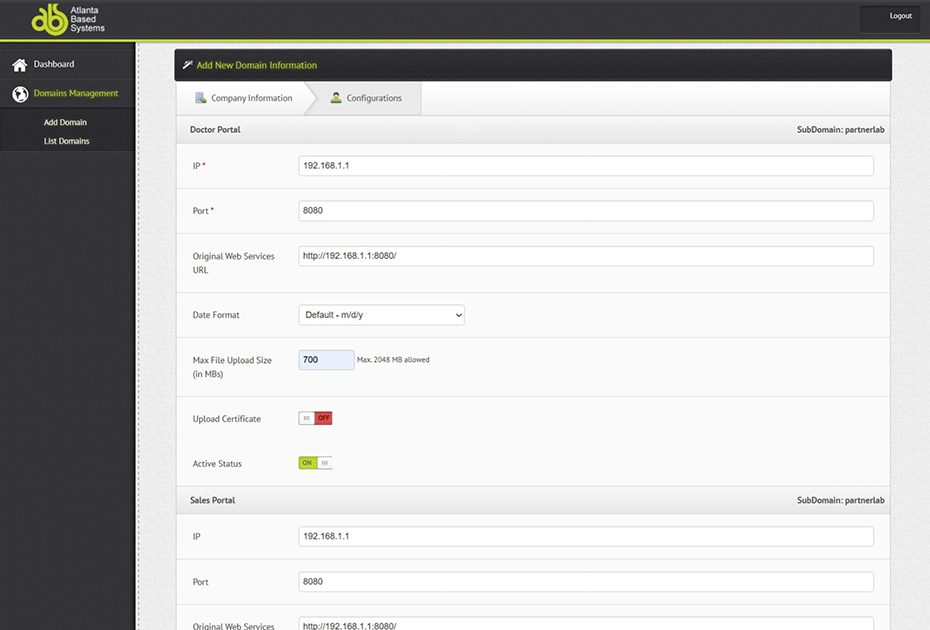 - Connectivity for each portal (IP, port, SSL, date formats, file-size limits)