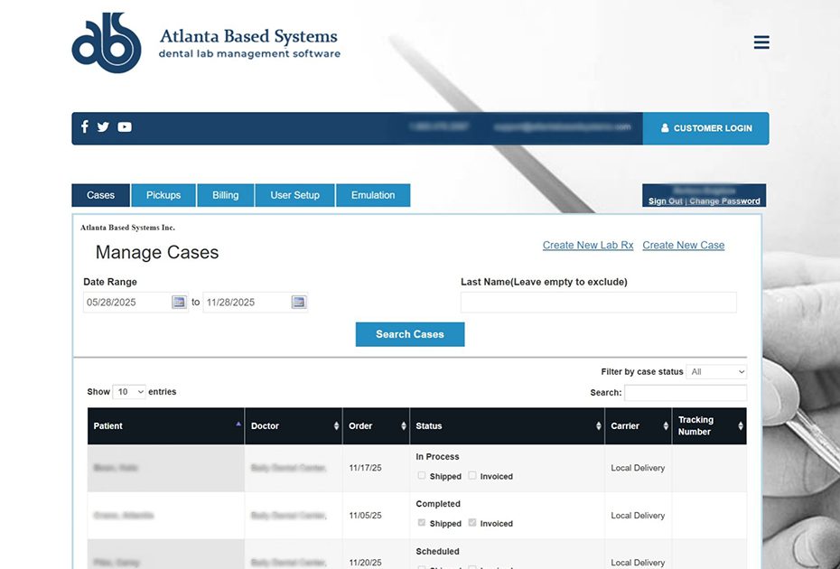 ABS serves labs across the United States, Canada, and Australia, offering a full toolbox of modules including workforce tracking, inventory & delivery management, and portals for doctors and lab clients empowering labs to run efficiently, reduce errors, and stay profitable even in a tough business climate.