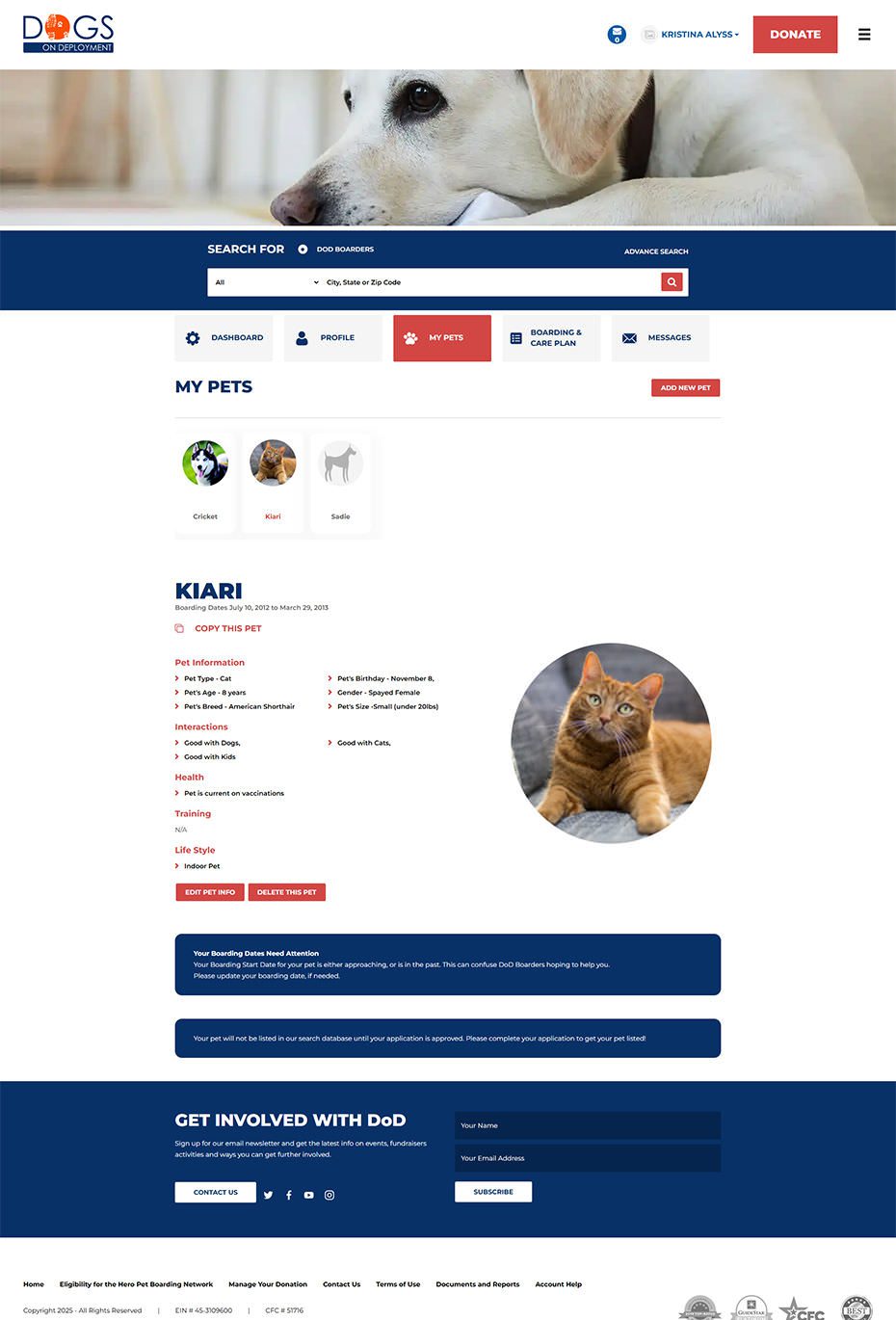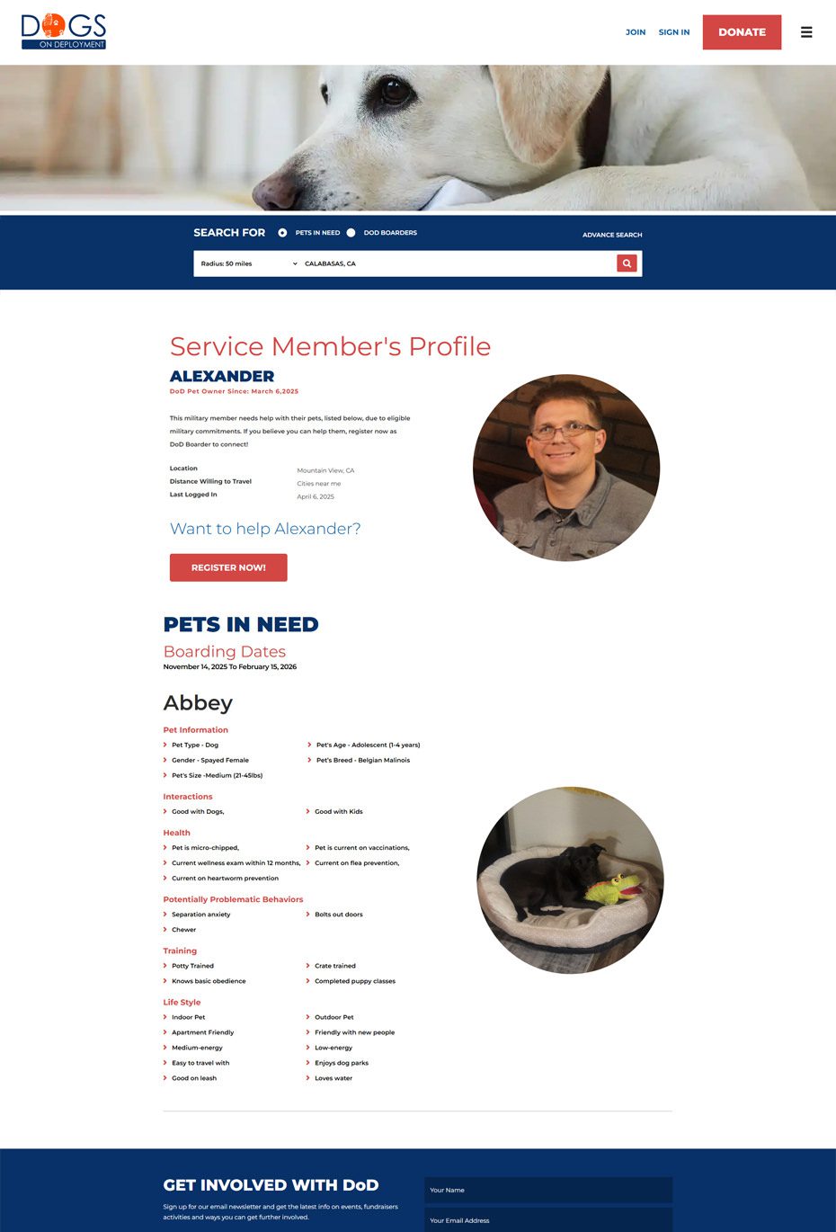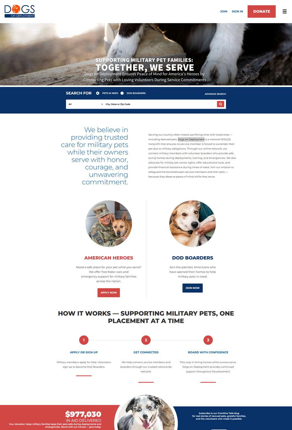 Mission Alignment: Build a national platform that helps military families secure safe, temporary homes for their pets during deployments and hardships, and administer financial assistance programs.