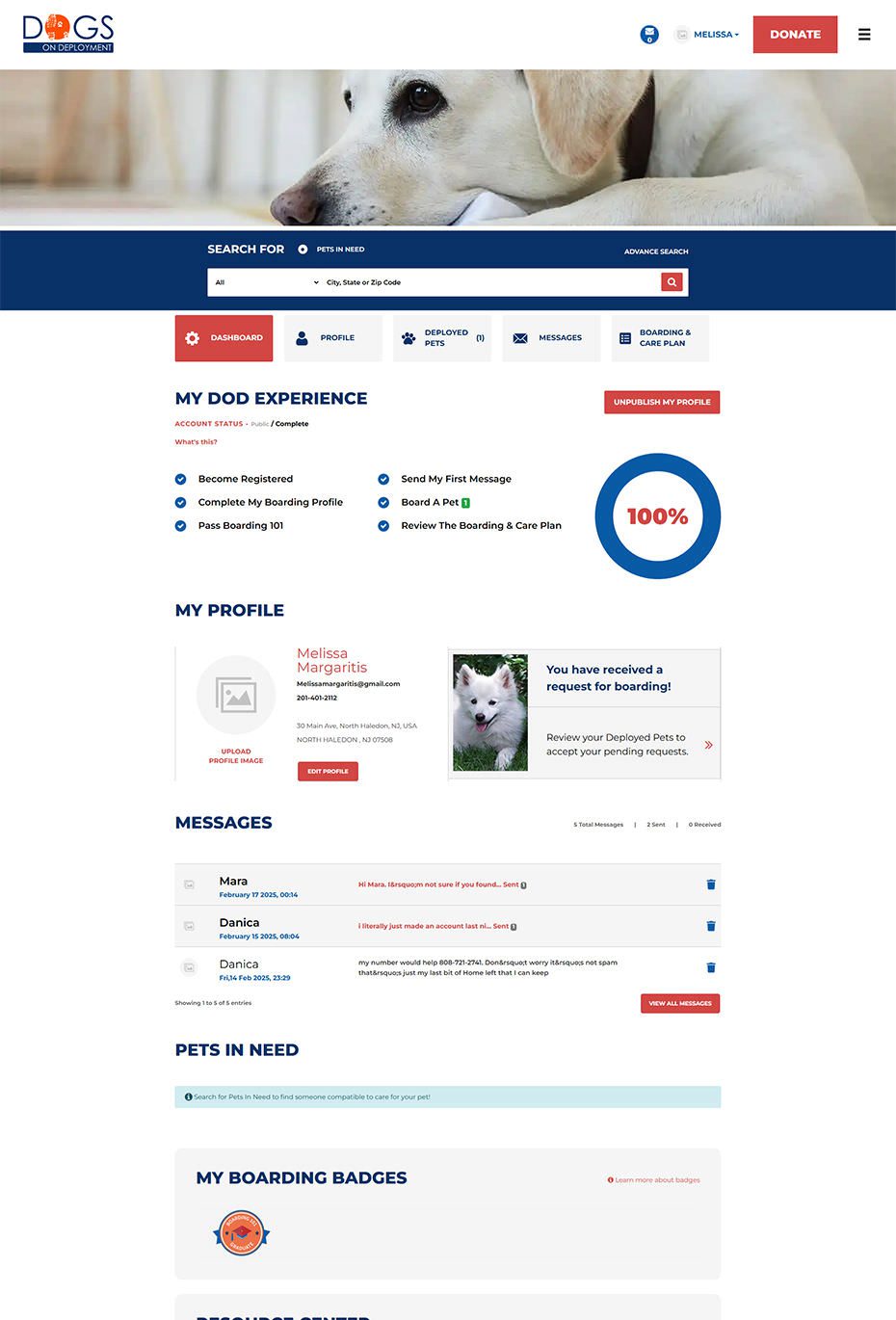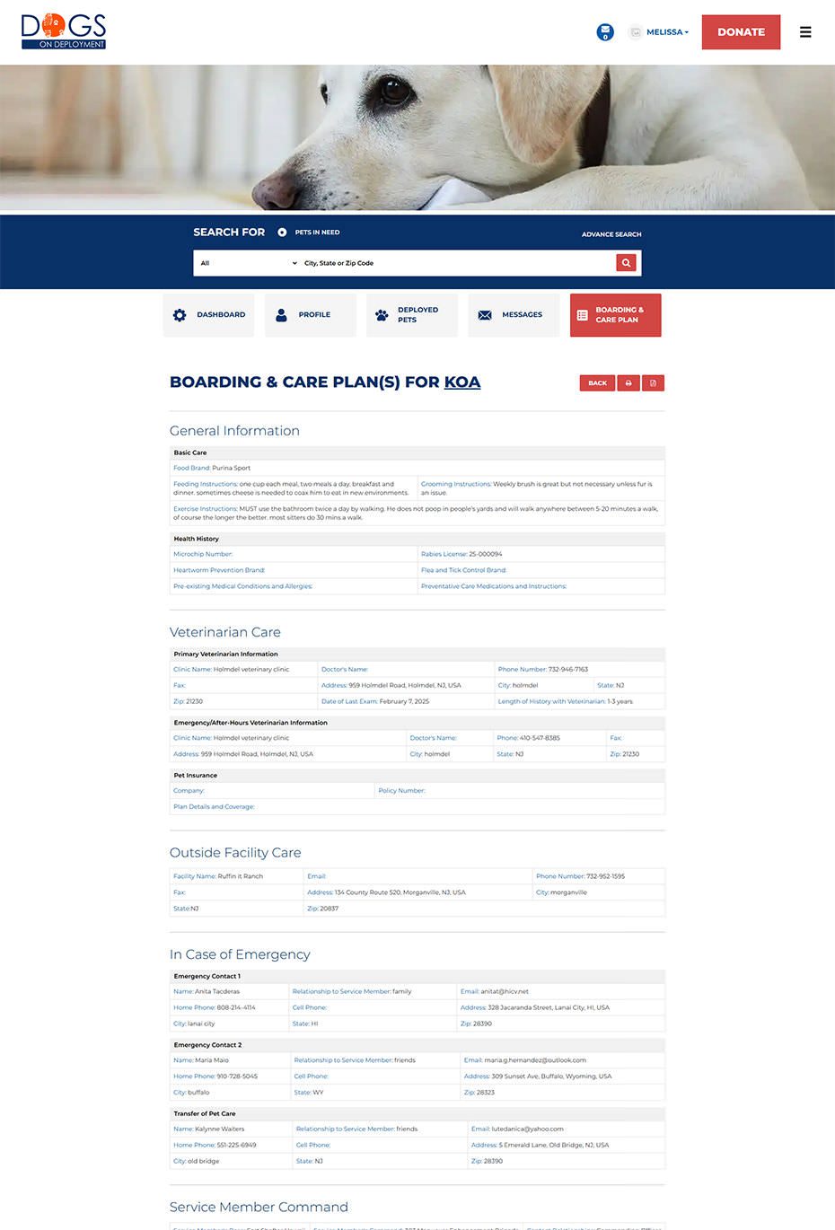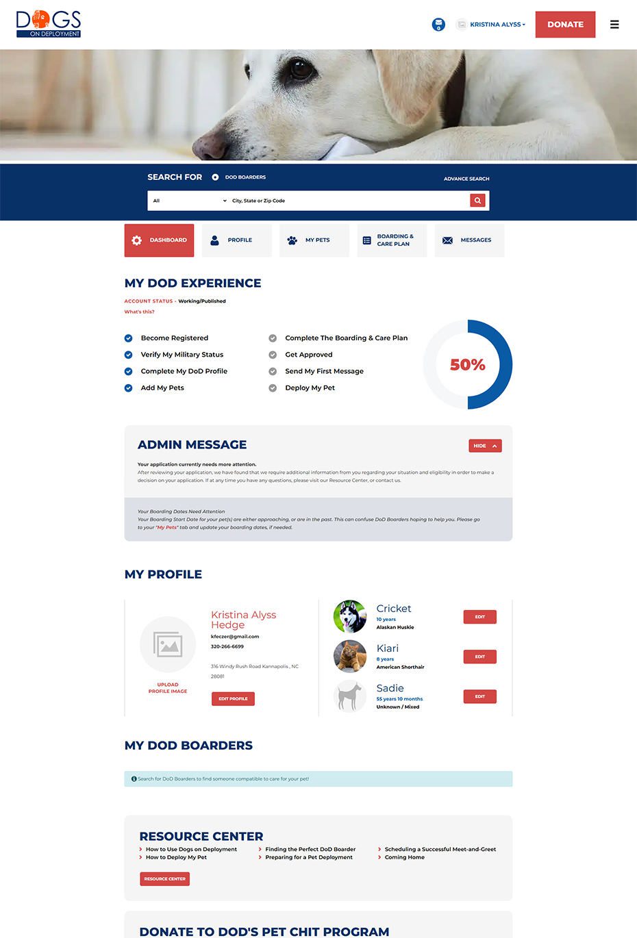 From finding a trusted boarder to managing deployments and aid programs, every screen was crafted to make compassion meet clarity. These snapshots showcase how thoughtful design and seamless workflows power Dogs on Deployment’s mission every day.
