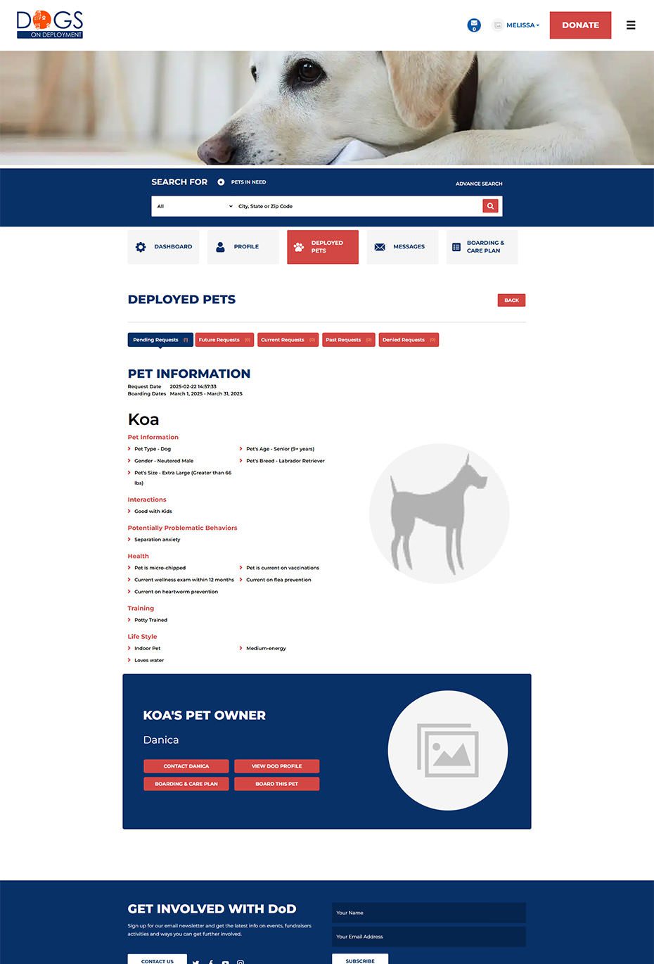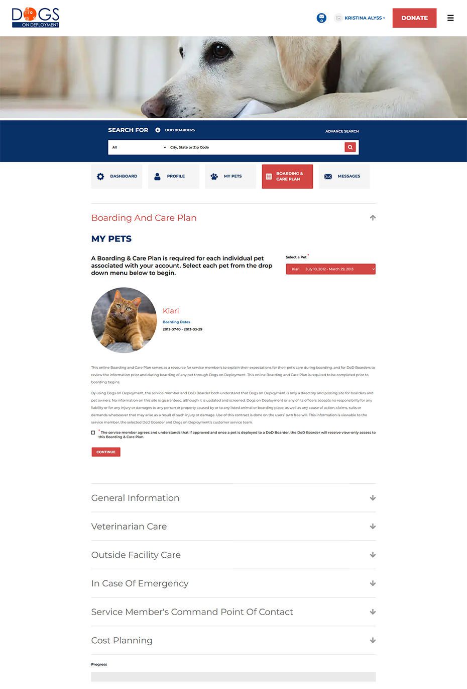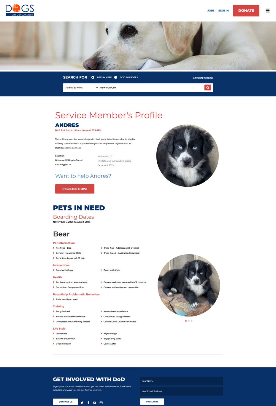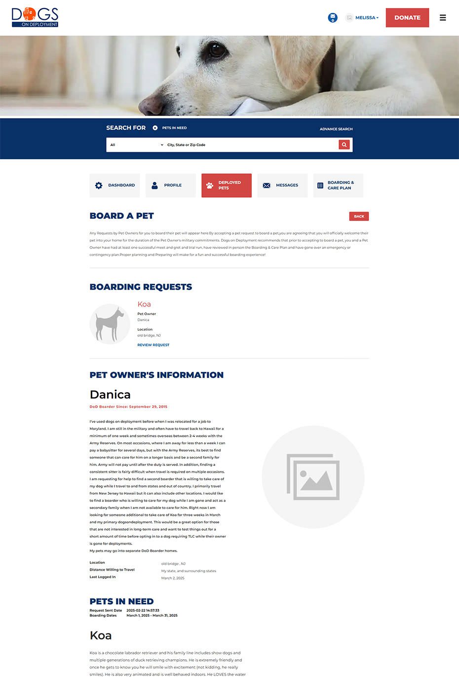 From finding a trusted boarder to managing deployments and aid programs, every screen was crafted to make compassion meet clarity. These snapshots showcase how thoughtful design and seamless workflows power Dogs on Deployment’s mission every day.