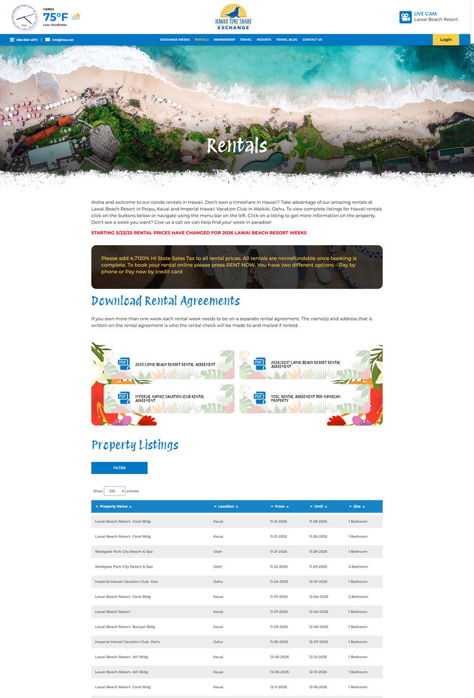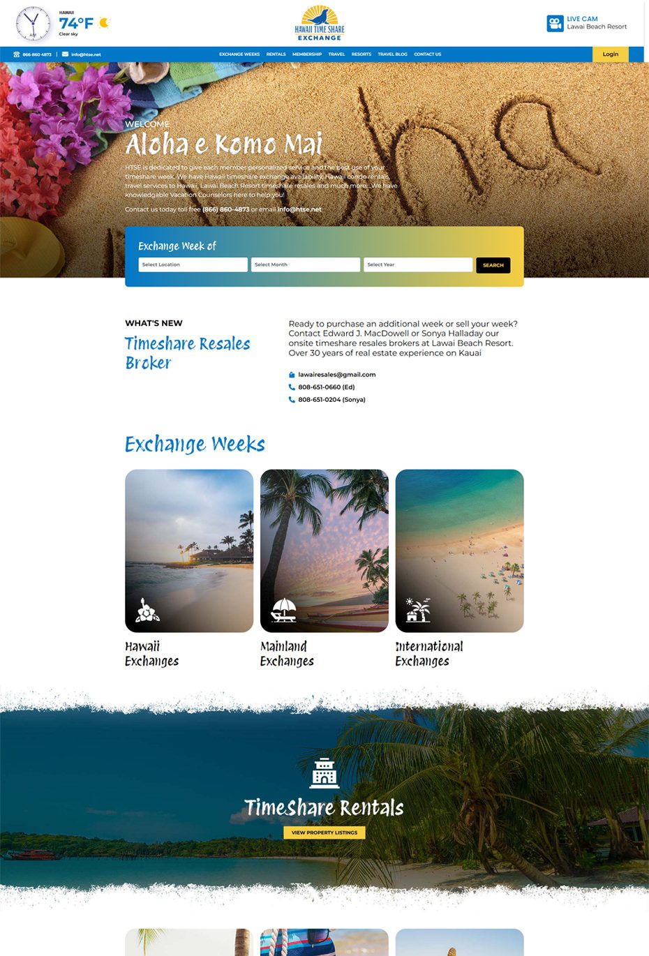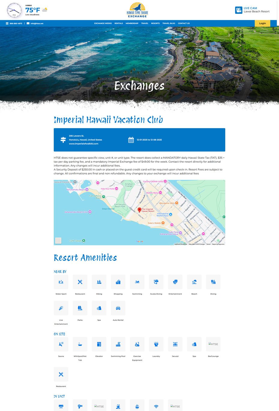 HTSE (Hawaii Timeshare Exchange) serves owners and travelers with a member‑centric exchange and rentals marketplace. Their public website showcases resorts, availability, and member services while the back‑office handles inventory, reservations, payments, and communications.