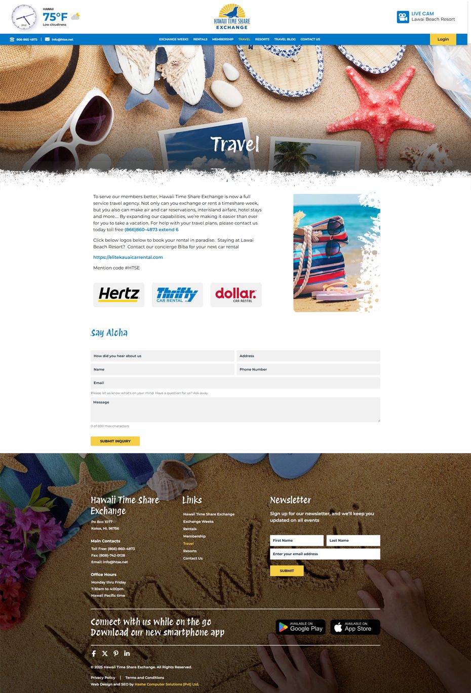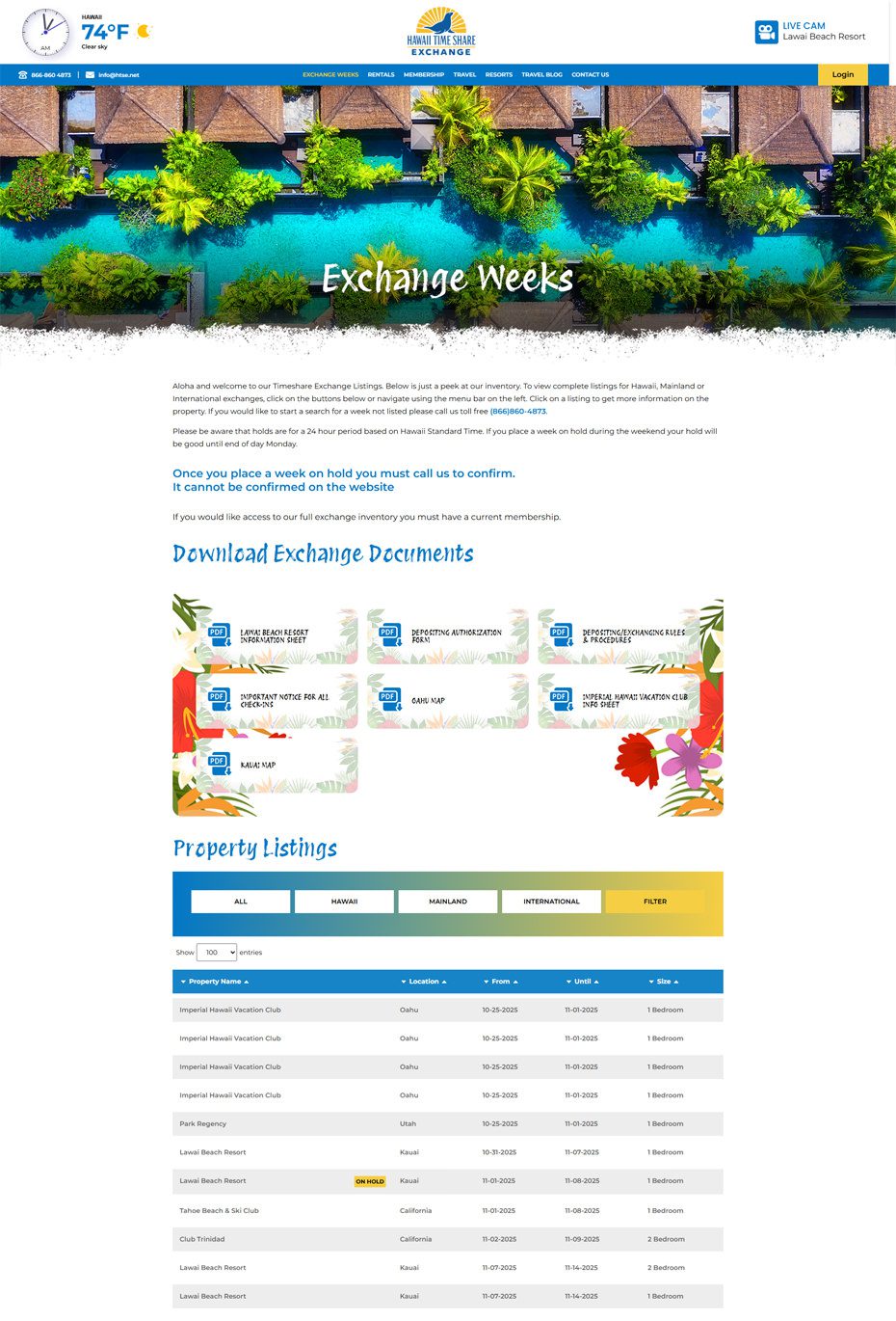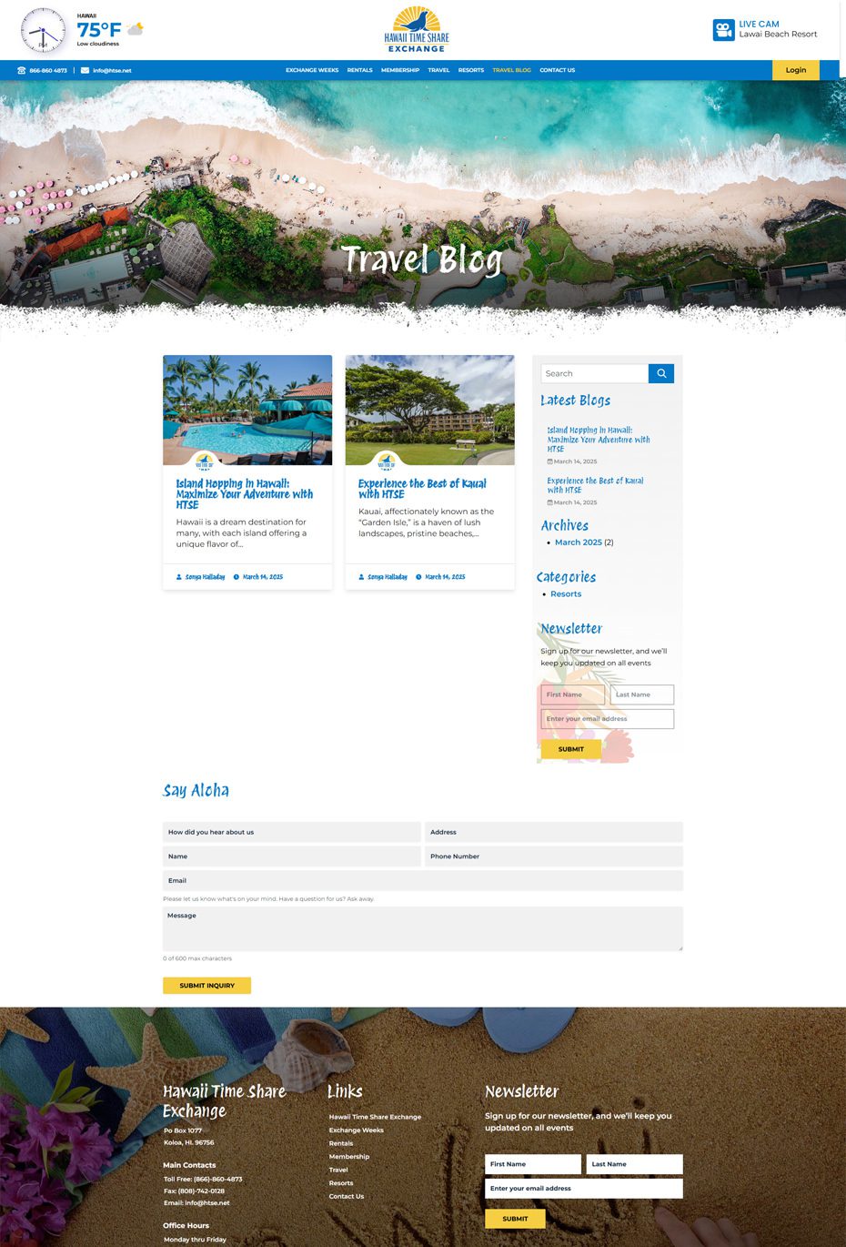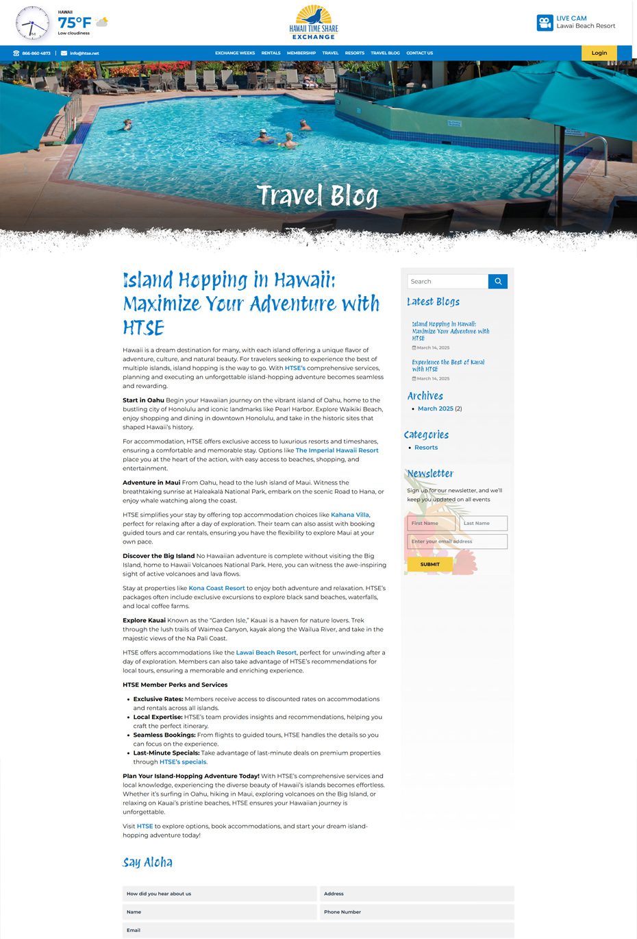 HTSE (Hawaii Timeshare Exchange) serves owners and travelers with a member‑centric exchange and rentals marketplace. Their public website showcases resorts, availability, and member services while the back‑office handles inventory, reservations, payments, and communications.